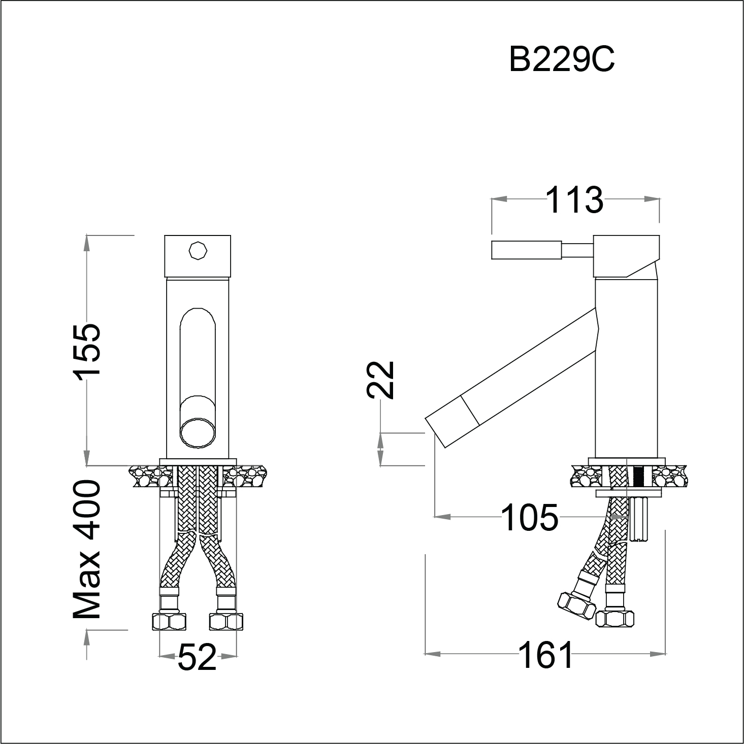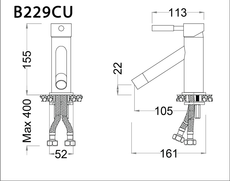 Bản vẽ kỹ thuật Vòi lavabo CAESAR B 229CU nóng lạnh