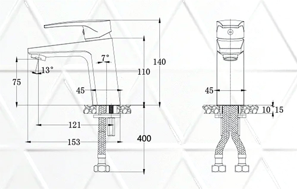 Bản vẽ kỹ thuật Vòi lavabo CAESAR B390CBU nóng lạnh