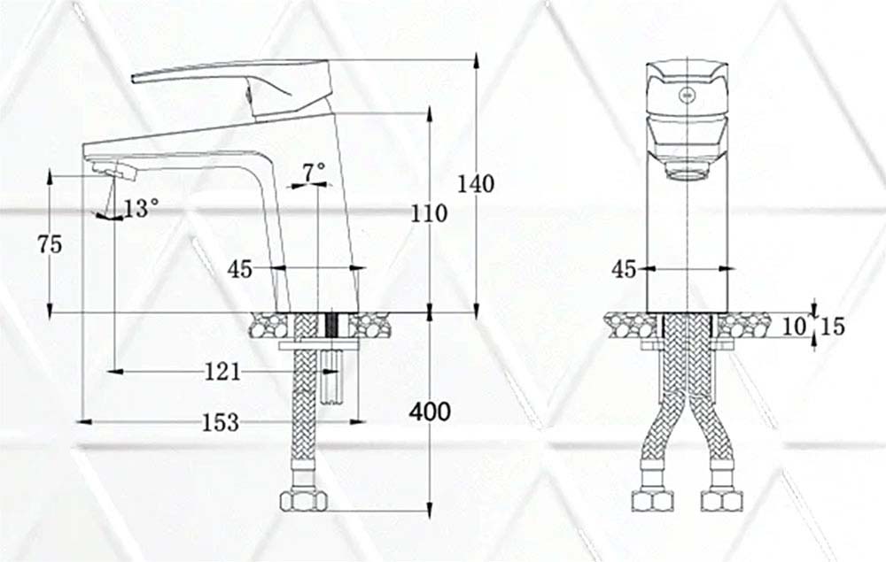 Bản vẽ kỹ thuật Vòi lavabo CAESAR B390CWU nóng lạnh