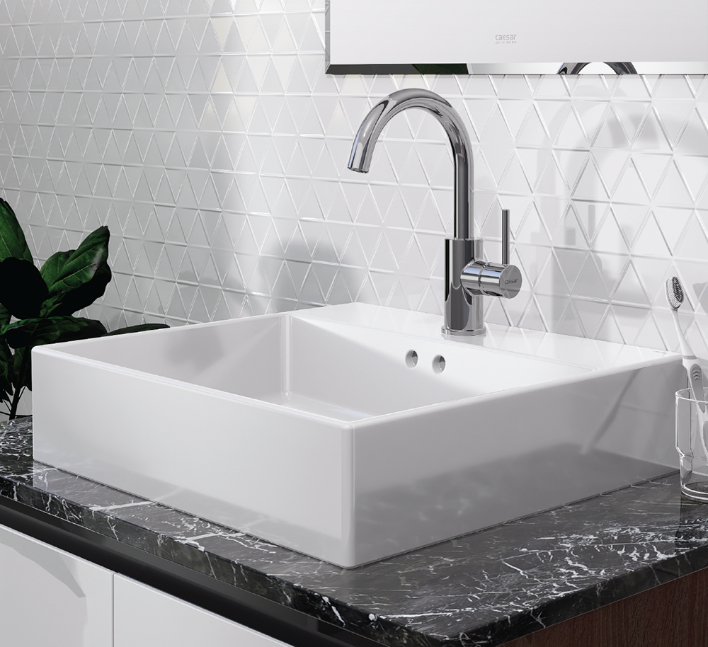 - Thiết kế tối ưu, hiện đại: Vòi lavabo có thiết kế cổ cao tạo điểm nhấn sang trọng và phù hợp với các mẫu chậu đặt bàn. Thiết kế tỉ mỉ và hiện đại giúp vòi lavabo trở thành điểm nhấn cho không gian phòng tắm.