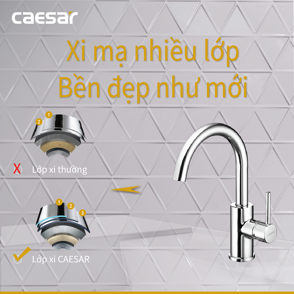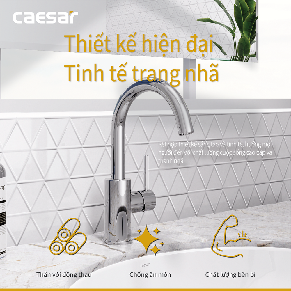 Vòi lavabo CAESAR B520CU cổ cao nóng lạnh