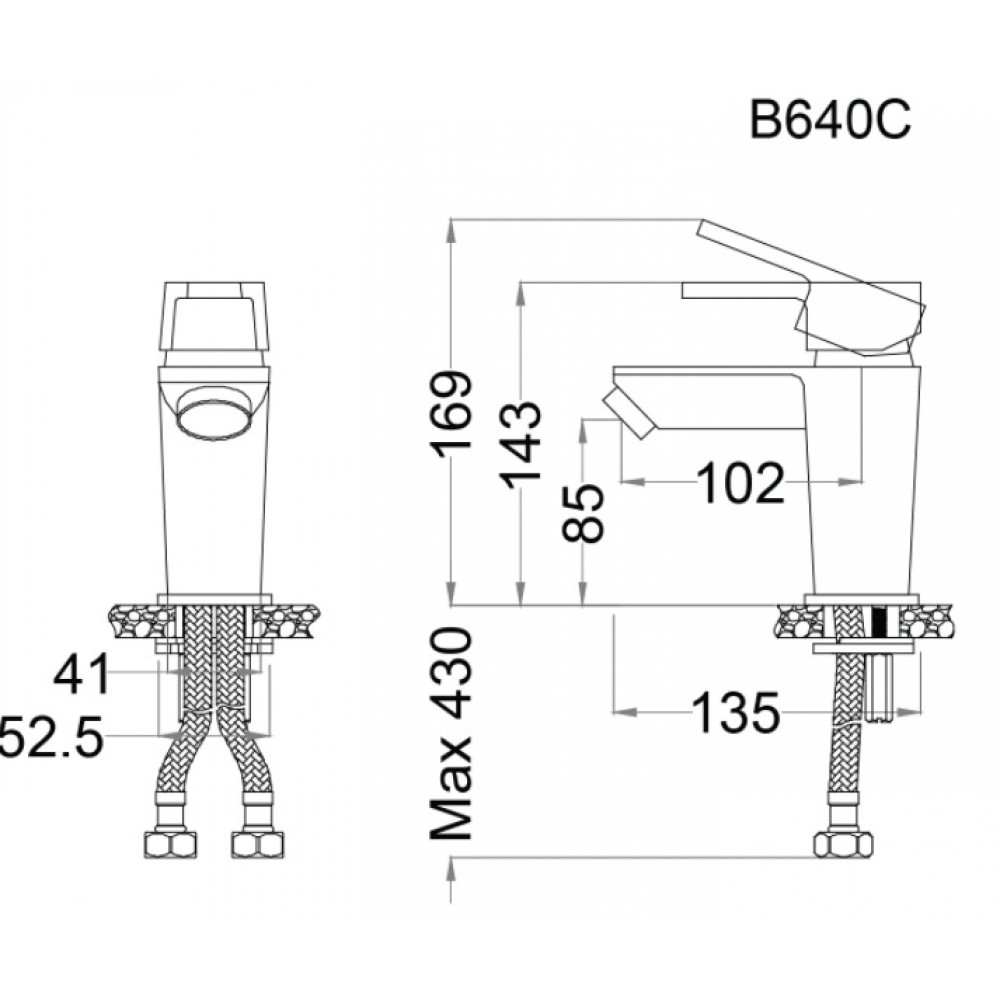 Bản vẽ kỹ thuật Vòi lavabo CAESAR B640CU nóng lạnh