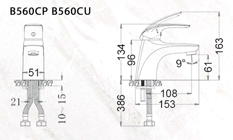 Bản vẽ kỹ thuật Vòi lavabo CAESAR BT560CP nóng lạnh