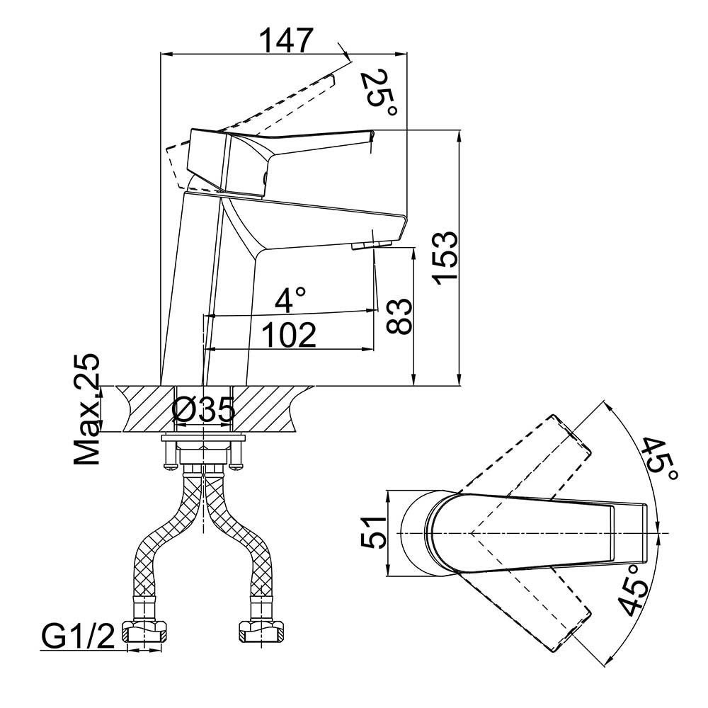Bản vẽ kích thước Vòi lavabo D&K DK1262101 nóng lạnh