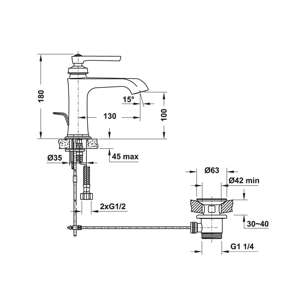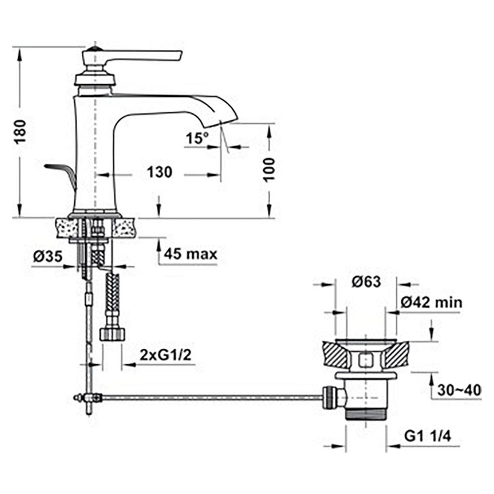 - Chiều cao: 180.00 mm, phù hợp với các loại lavabo và không gian phòng tắm khác nhau.