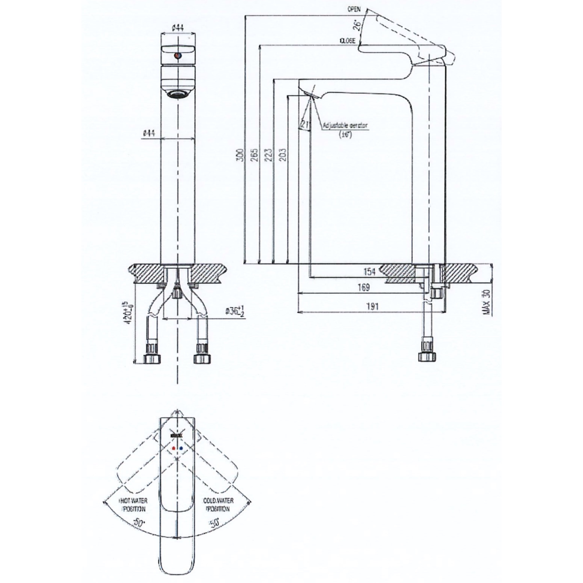 - Kiểu vòi: vòi chậu lavabo 1 lỗ 1 cần gạt nóng lạnh cổ cao