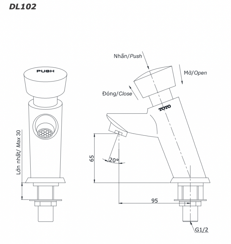 Thông số kĩ thuật Vòi lavabo TOTO DL 102 nước lạnh