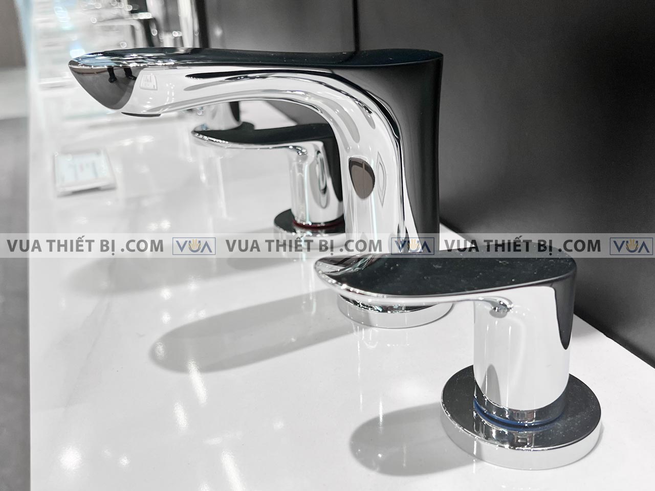 - Kiểu vòi: Vòi lavabo 3 chân gắn bàn/chậu nóng lạnh cổ thấp