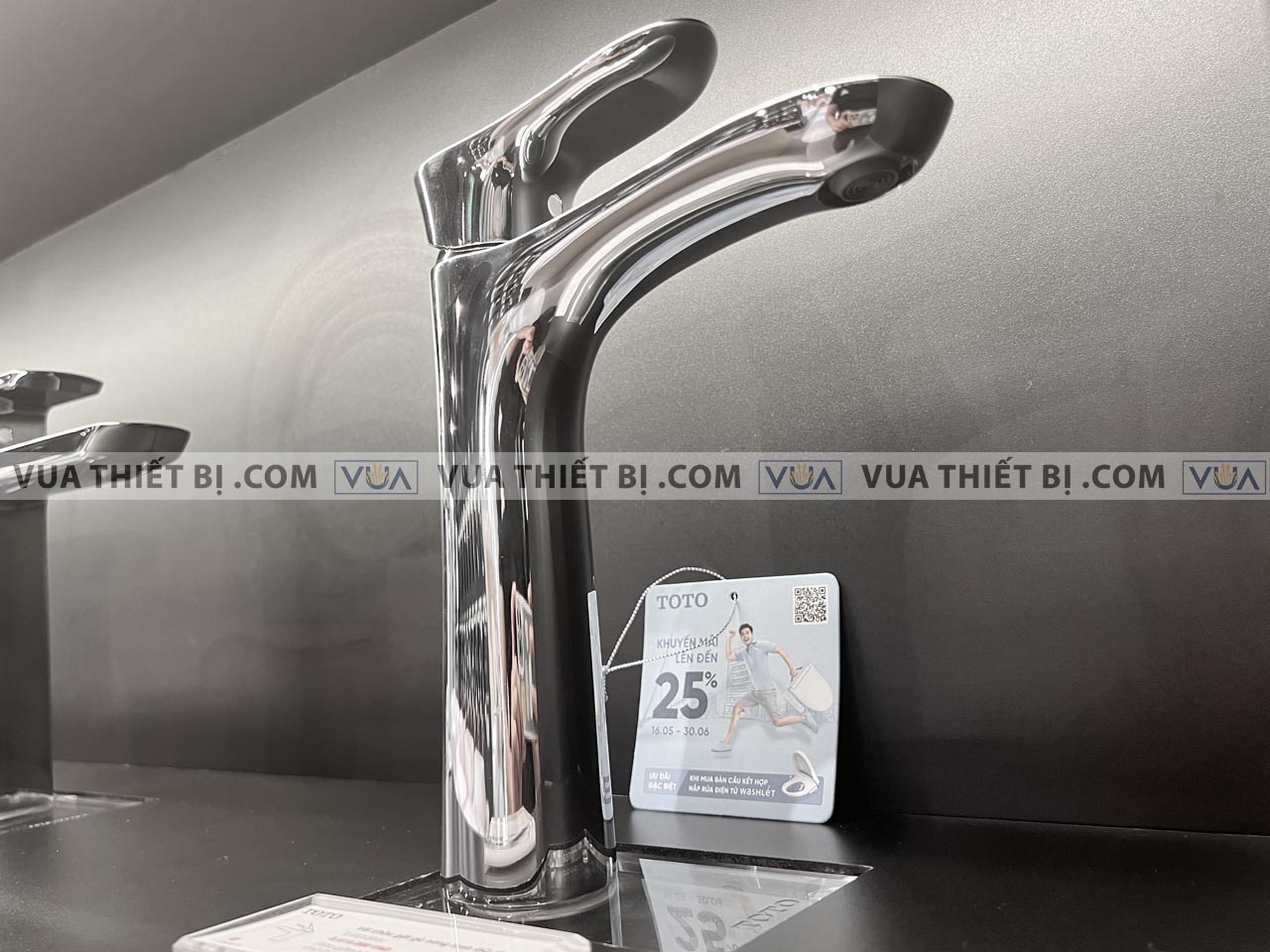 - Kiểu vòi: Vòi lavabo 1 chân gắn bàn/chậu nóng lạnh cổ cao