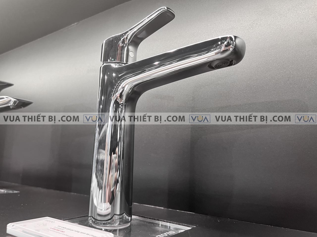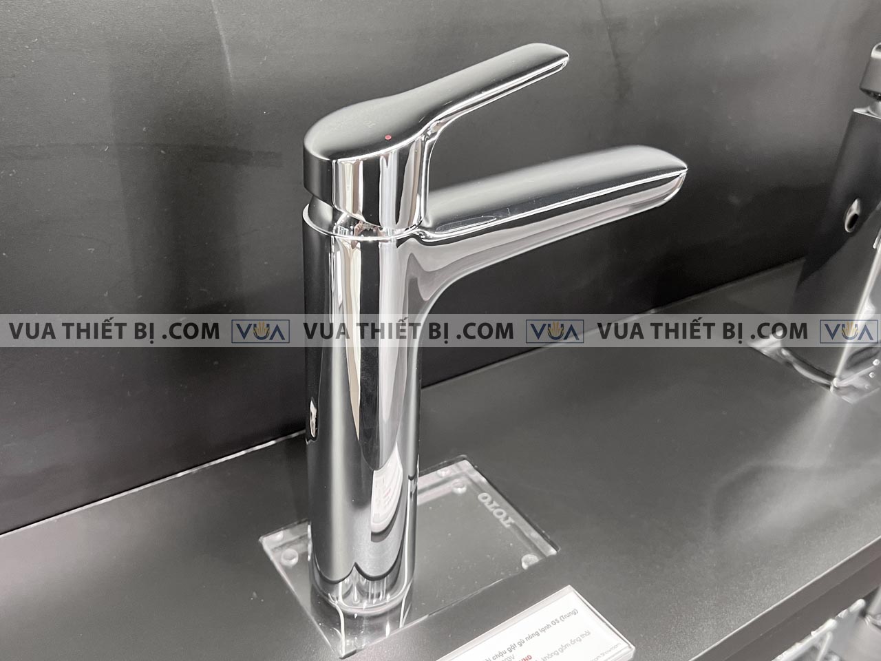 - Kiểu vòi: Vòi lavabo 1 chân gắn bàn/chậu nóng lạnh cổ cao