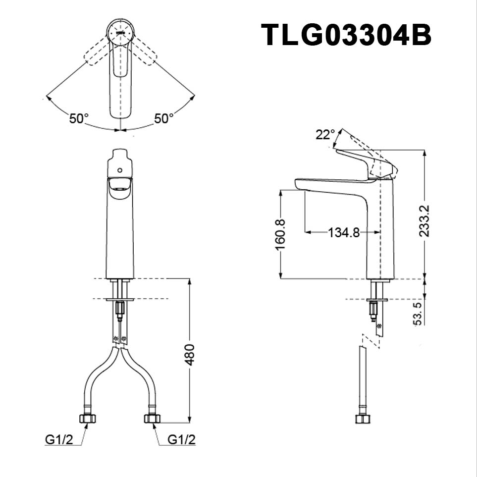 Bản vẽ kỹ thuật Vòi lavabo TOTO TLG 03304B nóng lạnh cổ cao