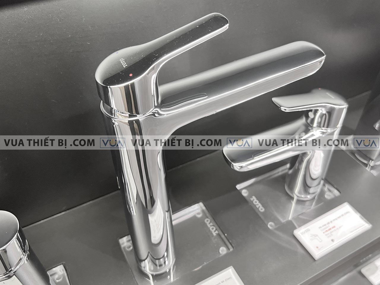 - Kiểu vòi: Vòi lavabo 1 chân gắn bàn/chậu nóng lạnh cổ cao