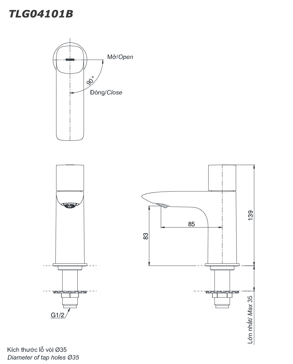 Thông số kĩ thuật Vòi lavabo TOTO TLG04101B chỉ lạnh