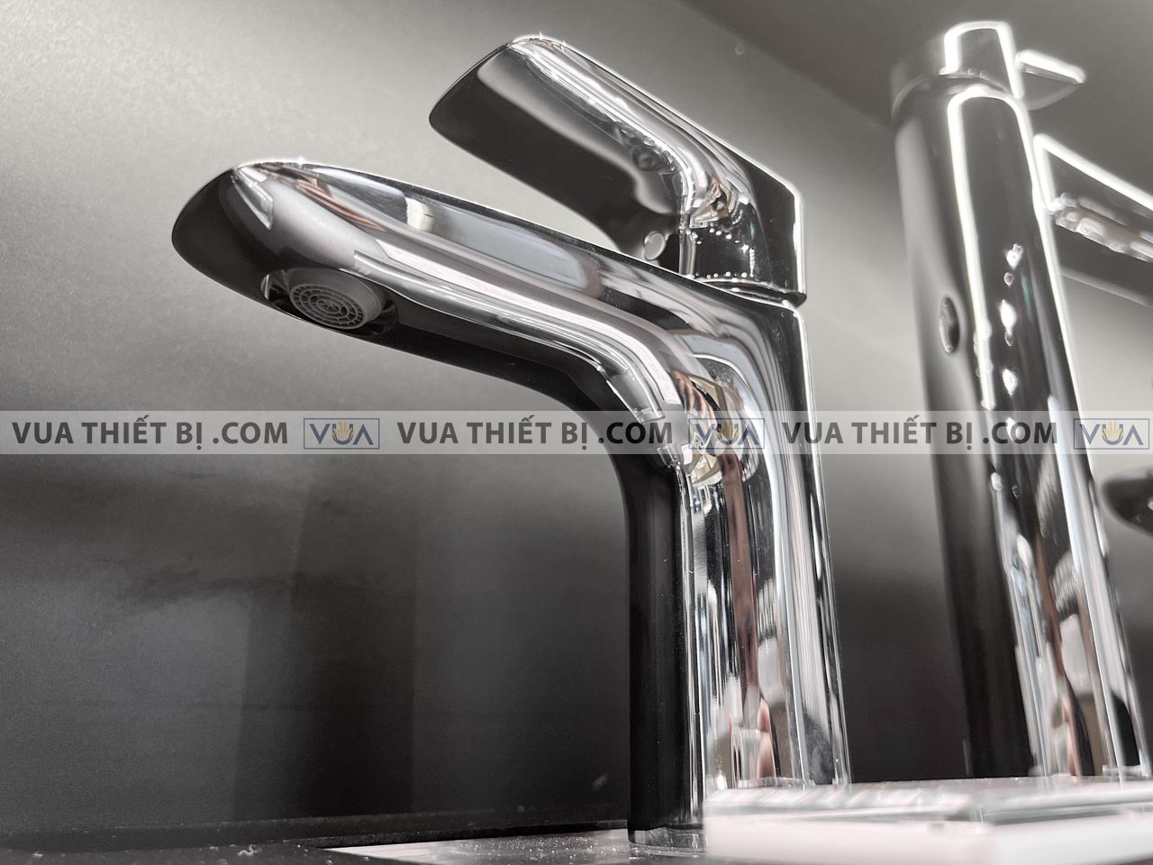- Kiểu vòi: Vòi lavabo 1 chân gắn bàn/chậu nóng lạnh cổ thấp