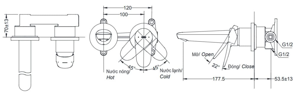 | Loại vòi | Vòi nóng lạnh gắn tường |