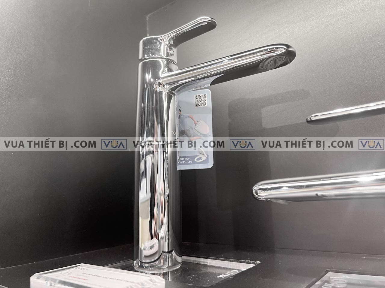 - Kiểu vòi: Vòi lavabo 1 chân gắn bàn/chậu nóng lạnh cổ cao