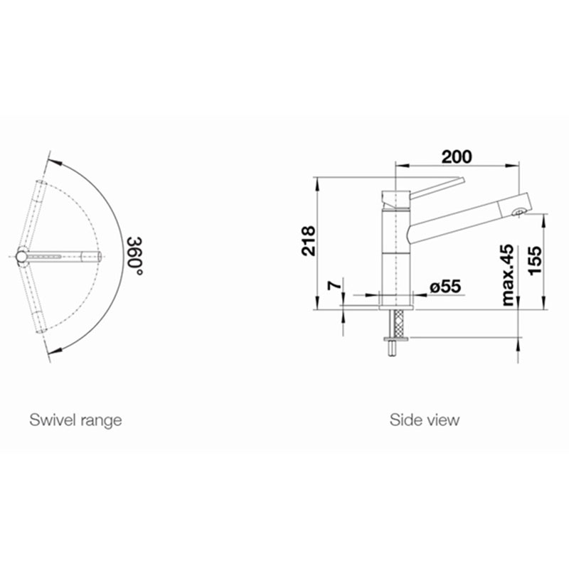 Bản vẽ kỹ thuật Vòi rửa bát BLANCO Alta Alumetalic nóng lạnh rút dây