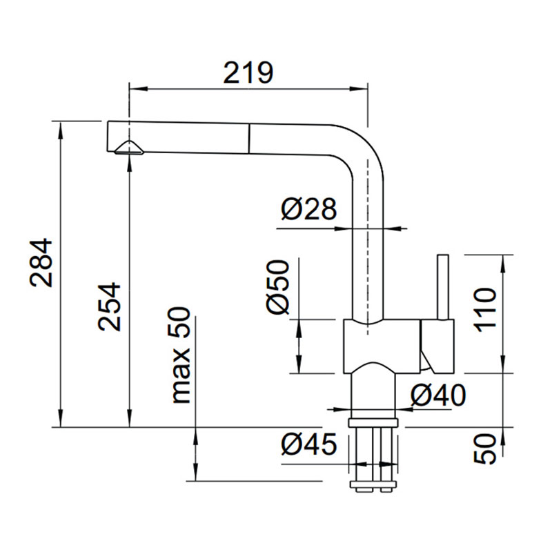 - Kích thước thân vòi : 284mm