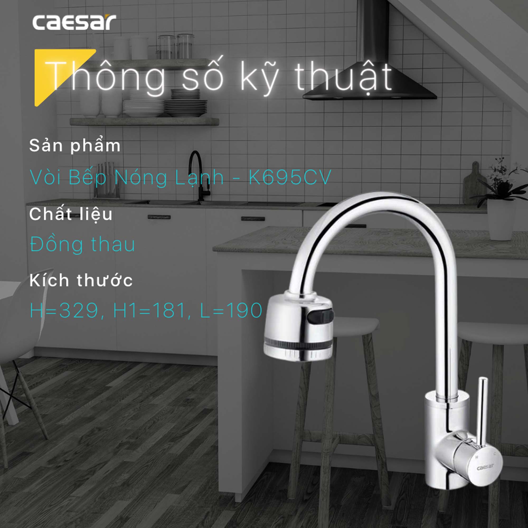 Thông số kỹ thuật Vòi rửa bát CAESAR K695CV nóng lạnh