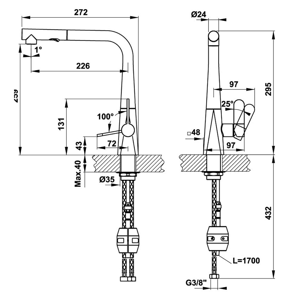 Bản vẽ kỹ thuật Vòi rửa bát HAFELE HYDROS HT20 CH1P259 570.82.200