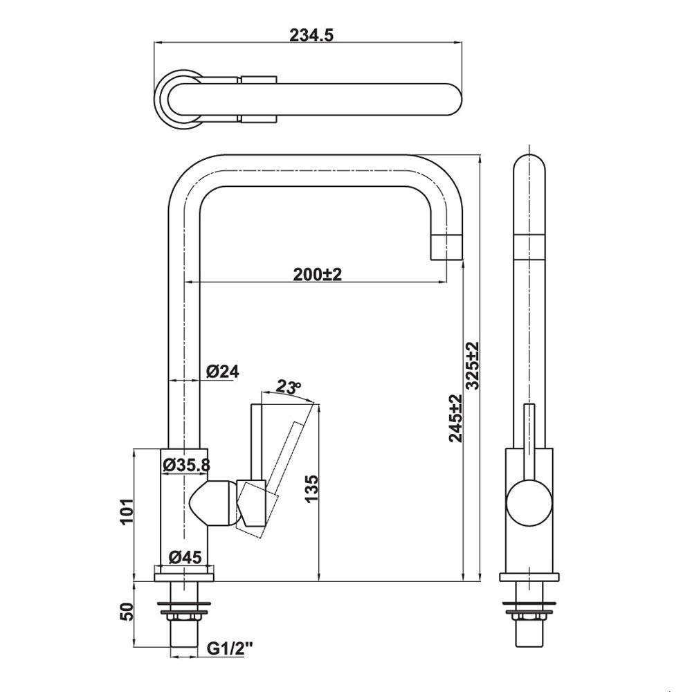 - Kích thước thân vòi : 325mm