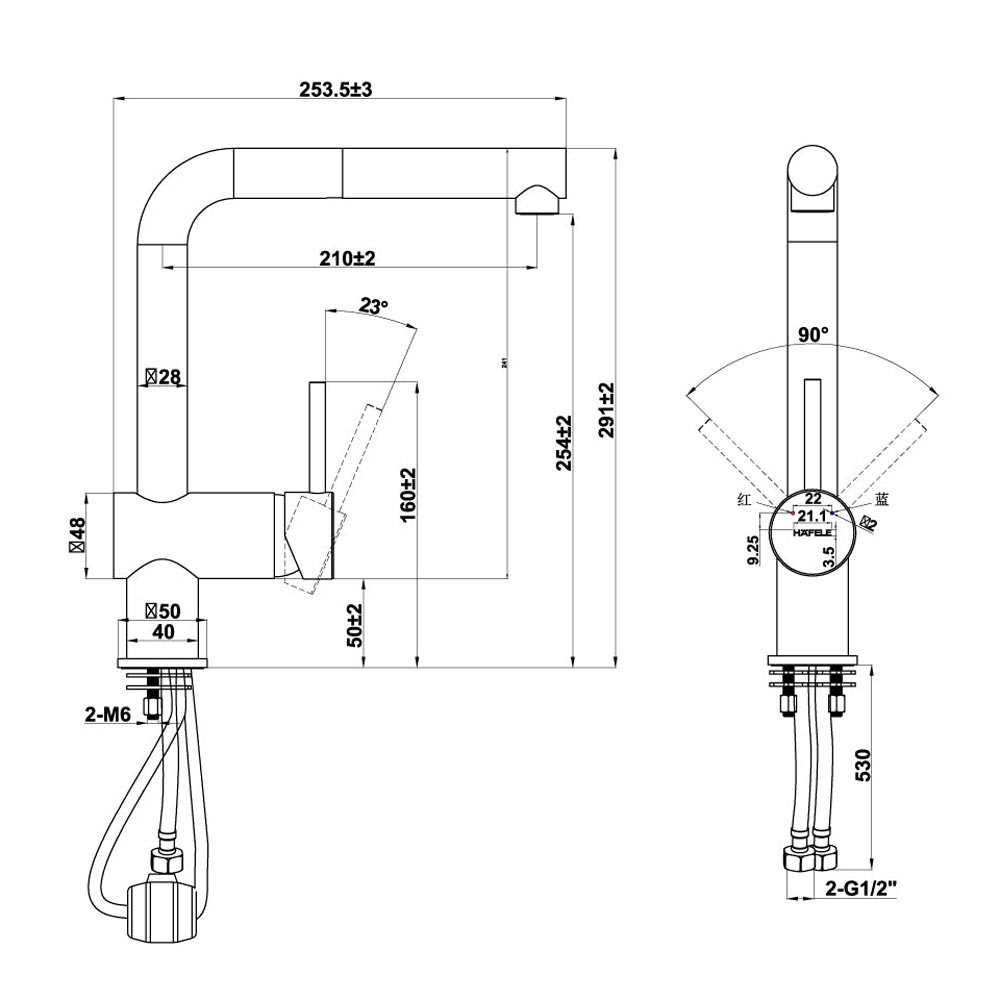Bản vẽ kỹ thuật Vòi rửa bát HAFELE HT21-GH1P250 577.55.390 nóng lạnh rút dây