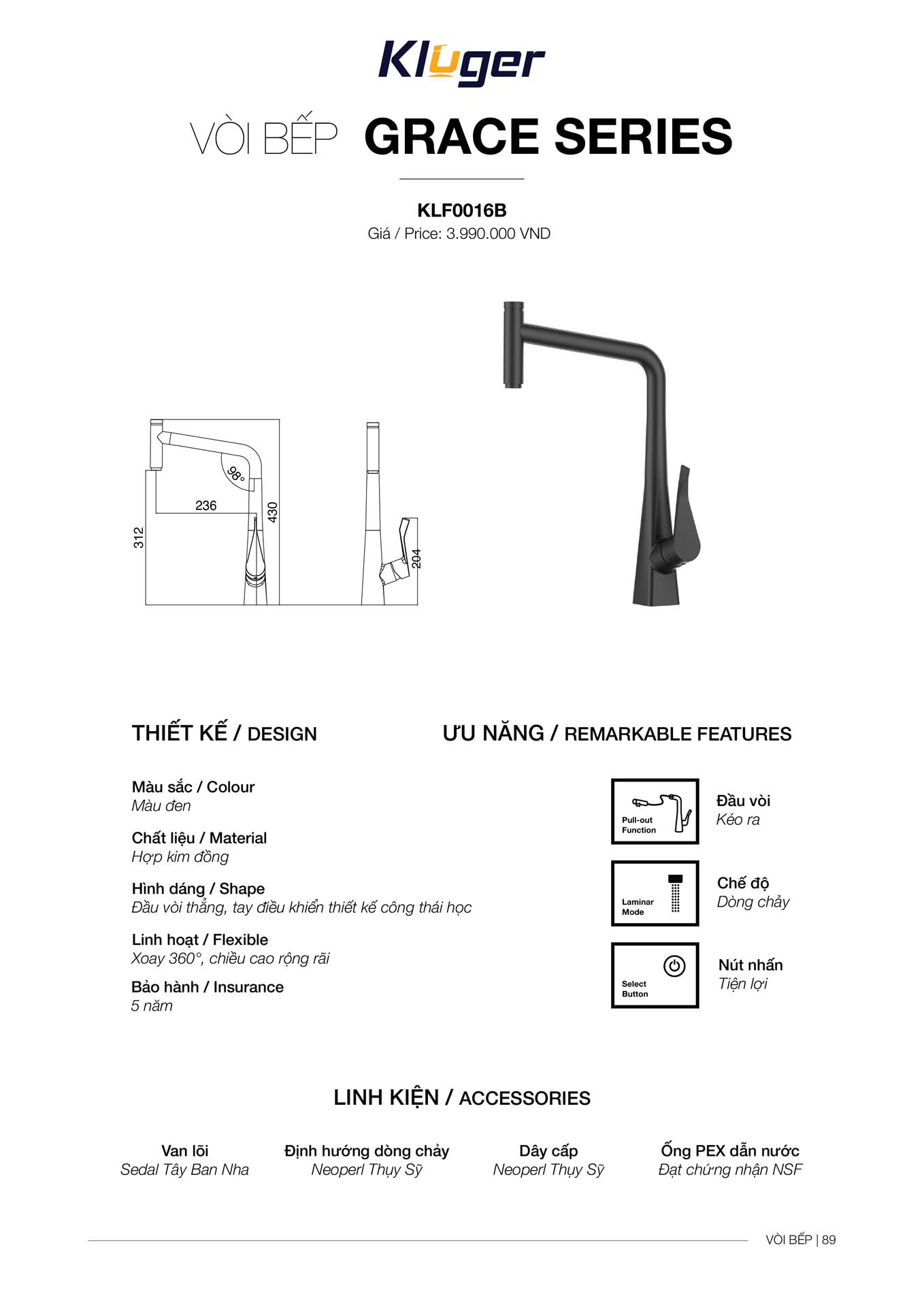 Vòi rửa bát KLUGER KLF0016B