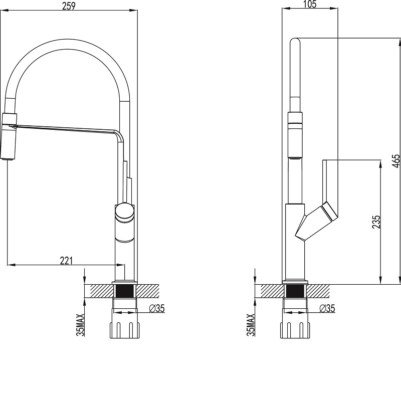 Bản vẽ kỹ thuật Vòi rửa bát MALLOCA K 081C nóng lạnh