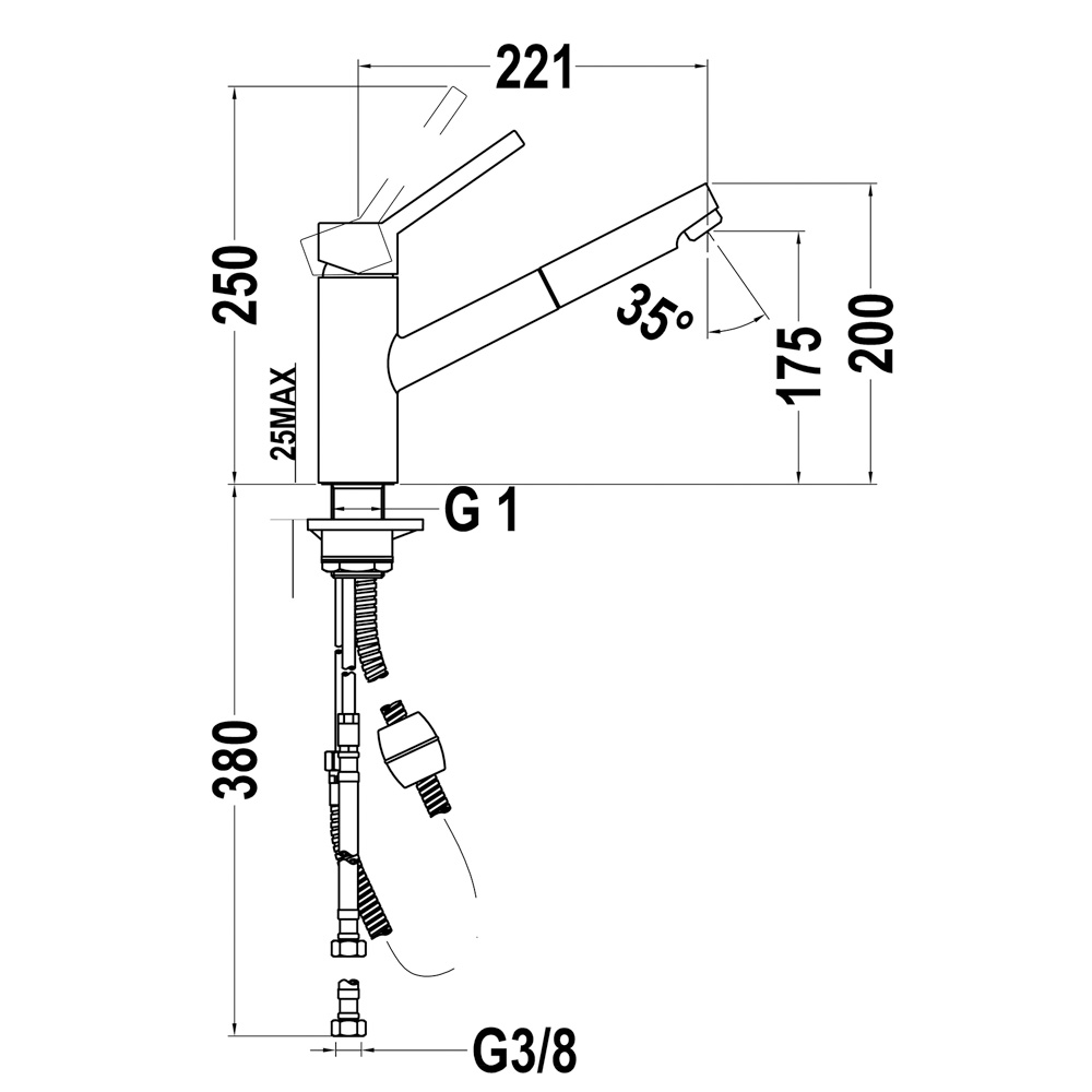Bản vẽ kỹ thuật Vòi rửa bát TEKA VTK 978 nóng lạnh rút dây