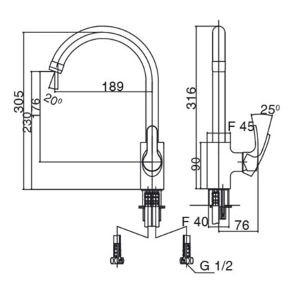 Vòi rửa bát INAX SFV-303S nóng lạnh