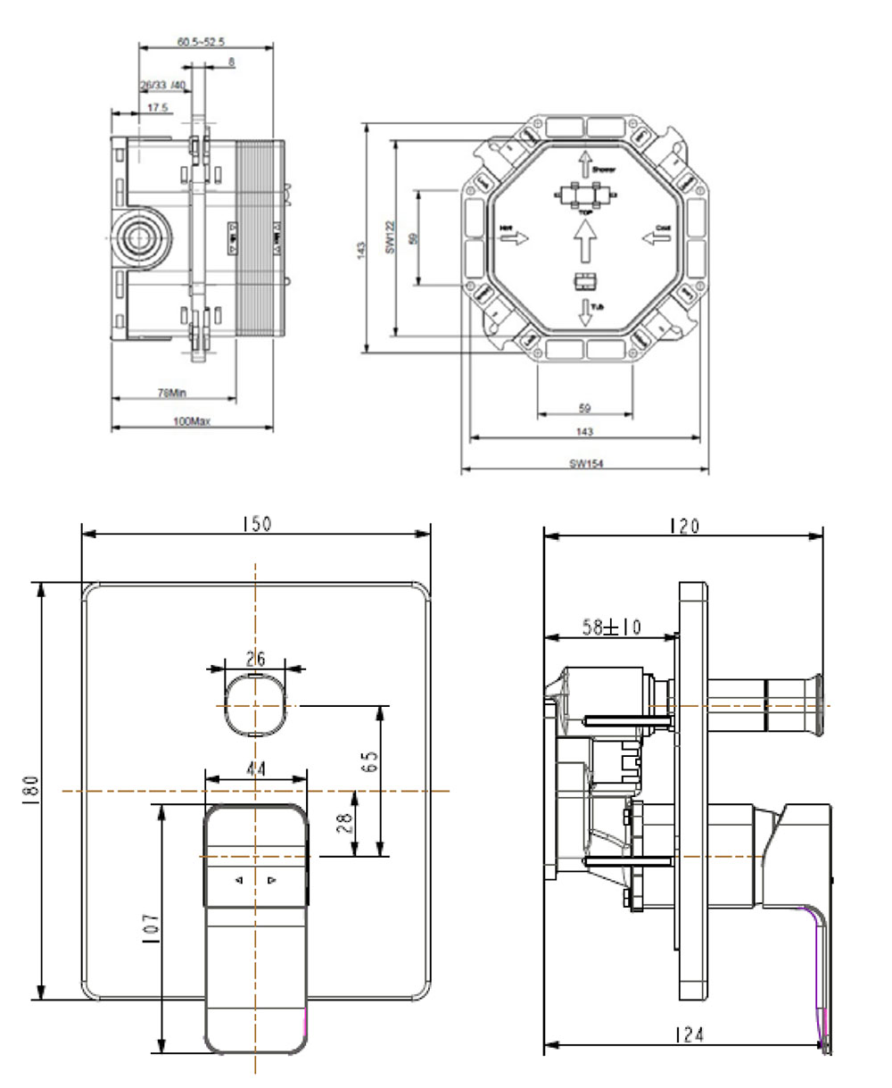 Bản vẽ kỹ thuật Vòi sen âm tường American Standard WF-1321MB dòng Acacia Evolution
