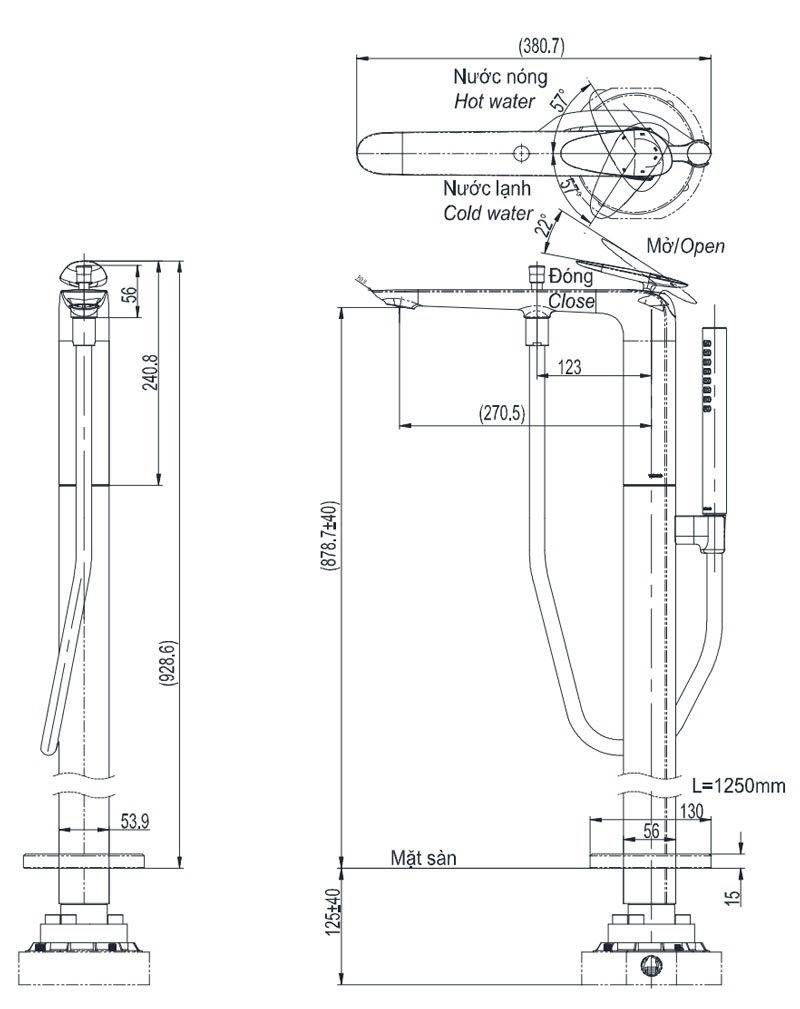| Kiểu sen | Vòi sen xả bồn tắm đặt sàn |