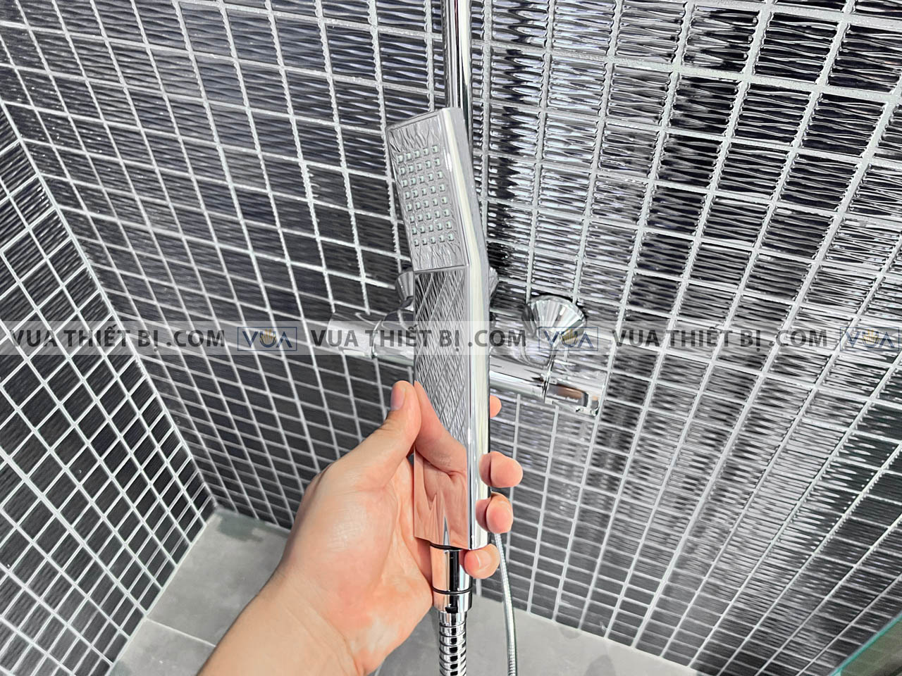 - DURASHINE: Lớp mạ chrome niken dày gấp đôi giúp sen tắm dễ dàng vệ sinh và duy trì sự sáng bóng trong nhiều năm.