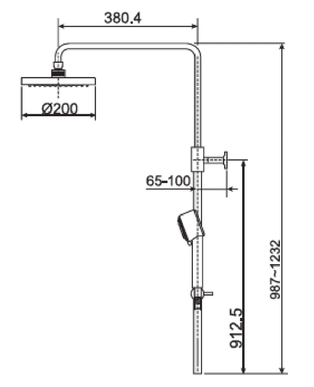 Bản vẽ kỹ thuật Vòi sen cây American Standard A-6110.978. 904 dòng Moonshadow D200