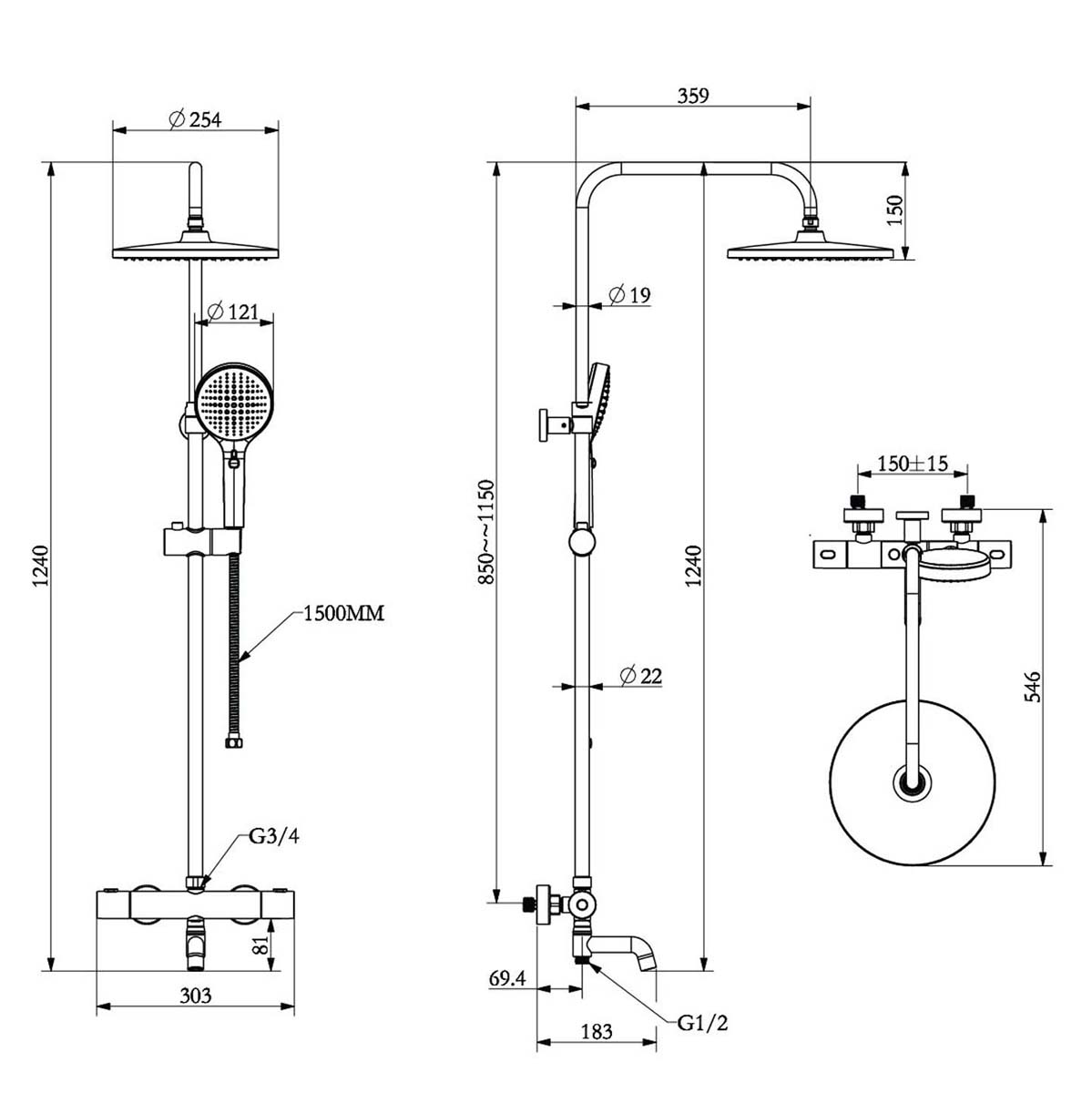 - Chiều cao cây sen điều chỉnh linh hoạt (khoảng 850 – 1150 mm): thích ứng tốt với nhiều không gian phòng tắm và chiều cao người dùng, mang đến tư thế tắm thoải mái.