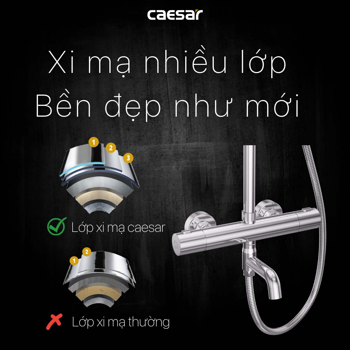 - Thương hiệu Caesar chính hãng, bảo hành rõ ràng: sản phẩm được phân phối bởi Caesar, kèm chế độ bảo hành tiêu chuẩn, giúp người dùng yên tâm về chất lượng và dịch vụ sau bán hàng