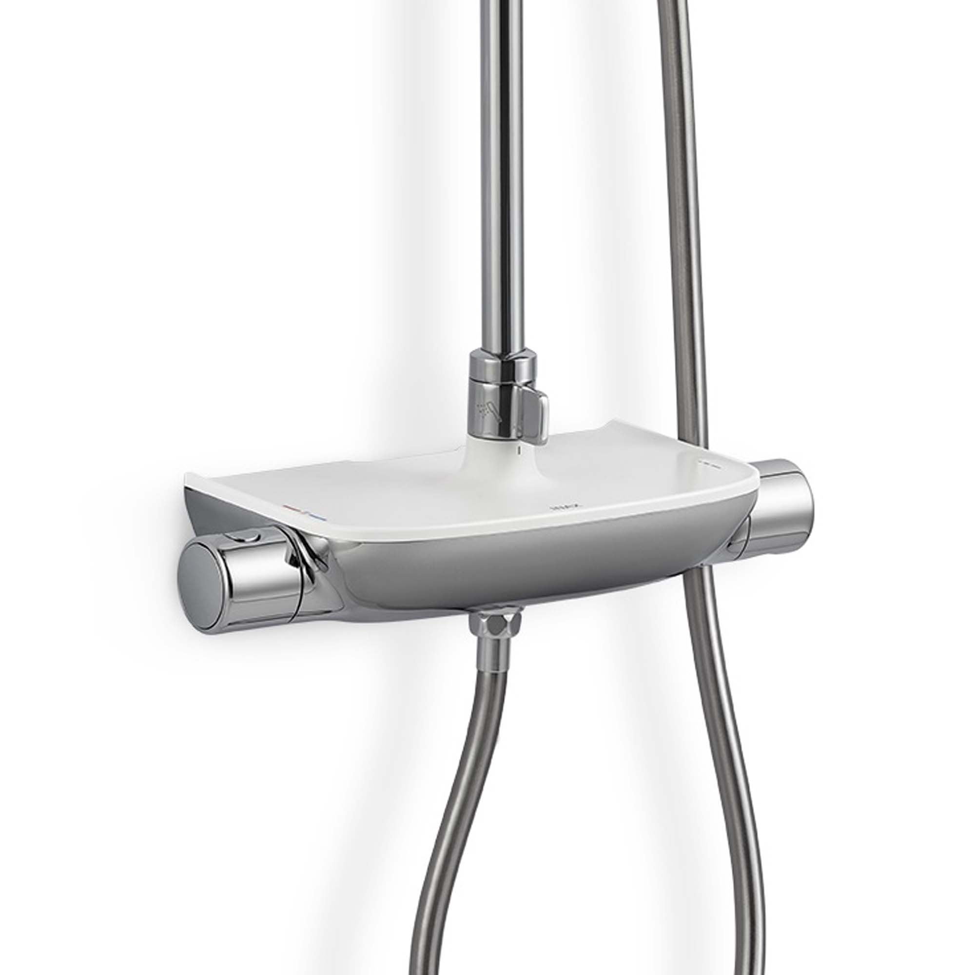 - Thân vòi tích hợp khay chứa đồ rộng rãi: Bề mặt trên của thân vòi được thiết kế phẳng, diện tích lớn với màu trắng sứ INAX đặc trưng. Bạn có thể tận dụng mặt phẳng này như một chiếc kệ tiện lợi để đặt dầu gội, sữa tắm, giúp phòng tắm gọn gàng hơn.