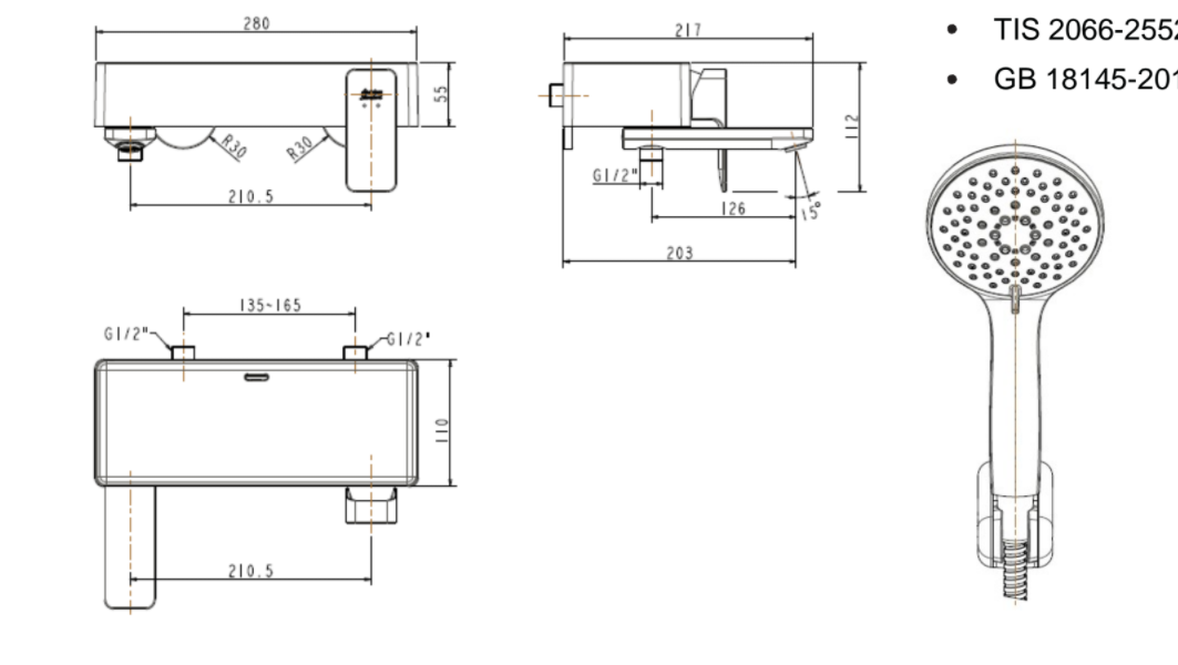 Bản vẽ kỹ thuật Vòi sen tắm American Standard WF-1311 dòng Acacia Evolution