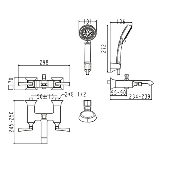 Bản vẽ kỹ thuật Vòi sen tắm American Standard WF-1611 dòng Kastello