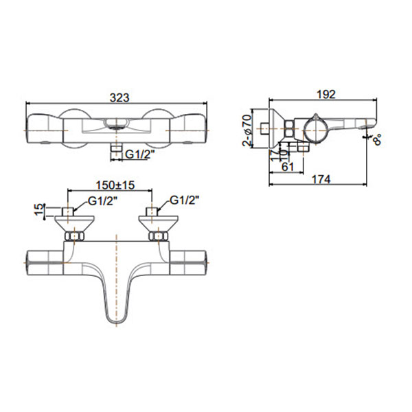 Bản vẽ kỹ thuật Vòi sen tắm American Standard WF-4949 dòng Temptacion nhiệt độ