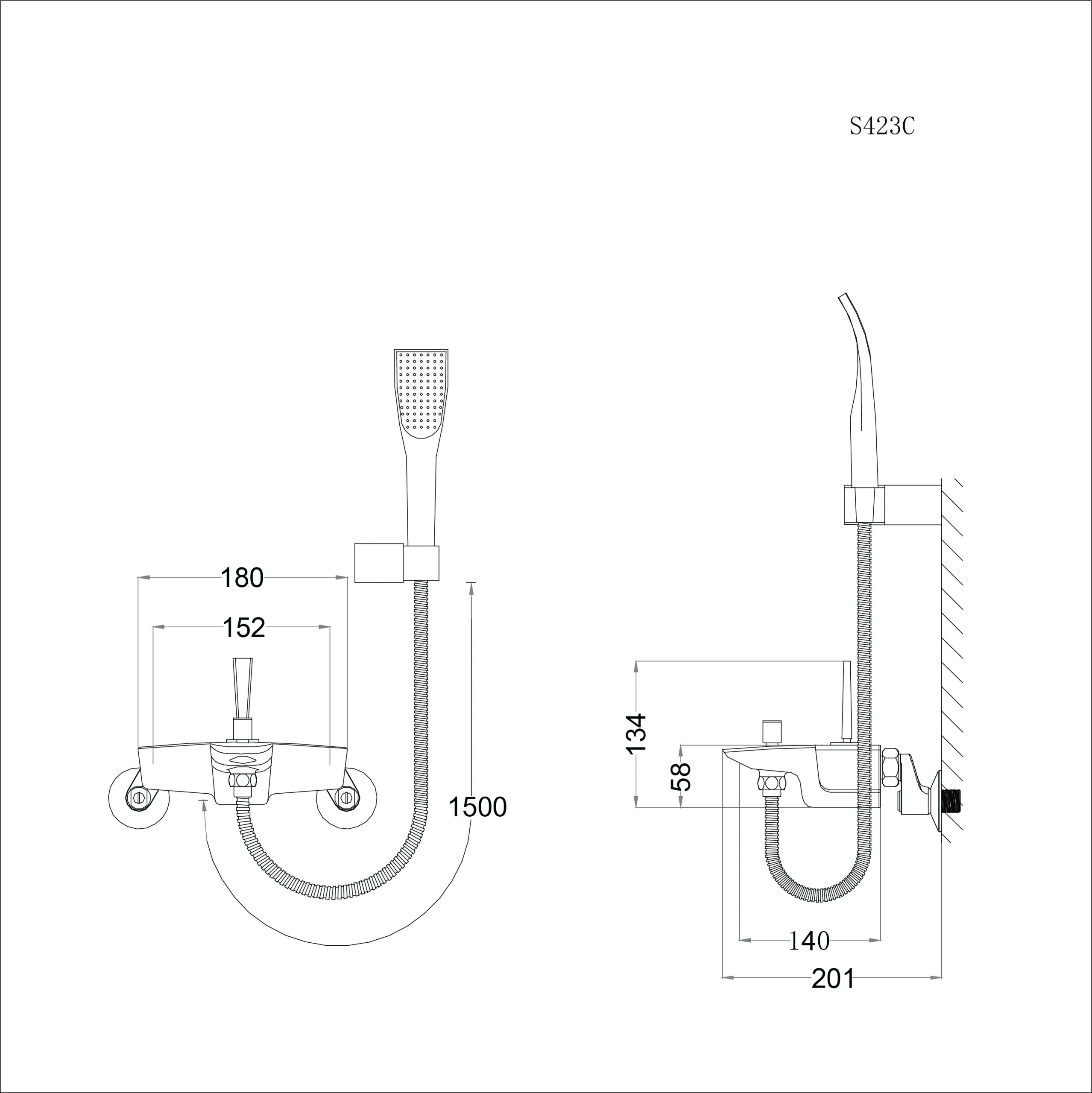 Bản vẽ kỹ thuật Vòi sen tắm CAESAR S423C nóng lạnh