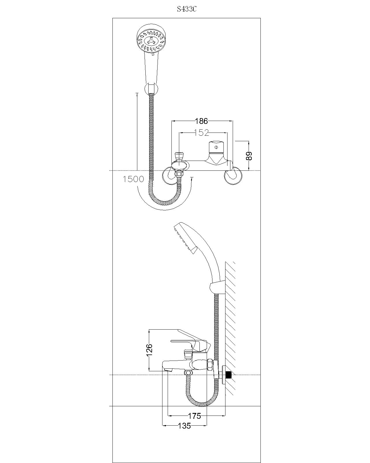 Bản vẽ kỹ thuật Vòi sen tắm CAESAR S433CW nóng lạnh tay 3 chế độ