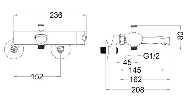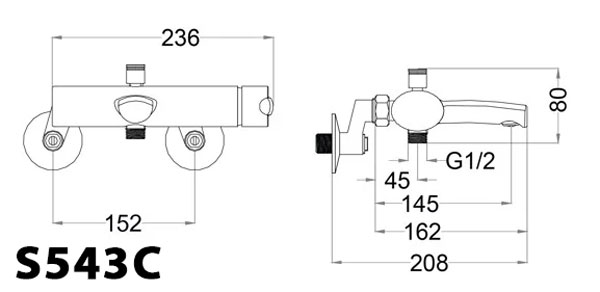 Bản vẽ kỹ thuật Vòi sen tắm CAESAR S543 C nóng lạnh
