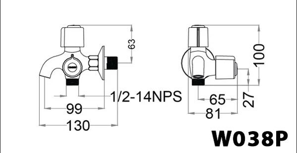 Bản vẽ kỹ thuật Vòi sen tắm CAESAR W 038P lạnh