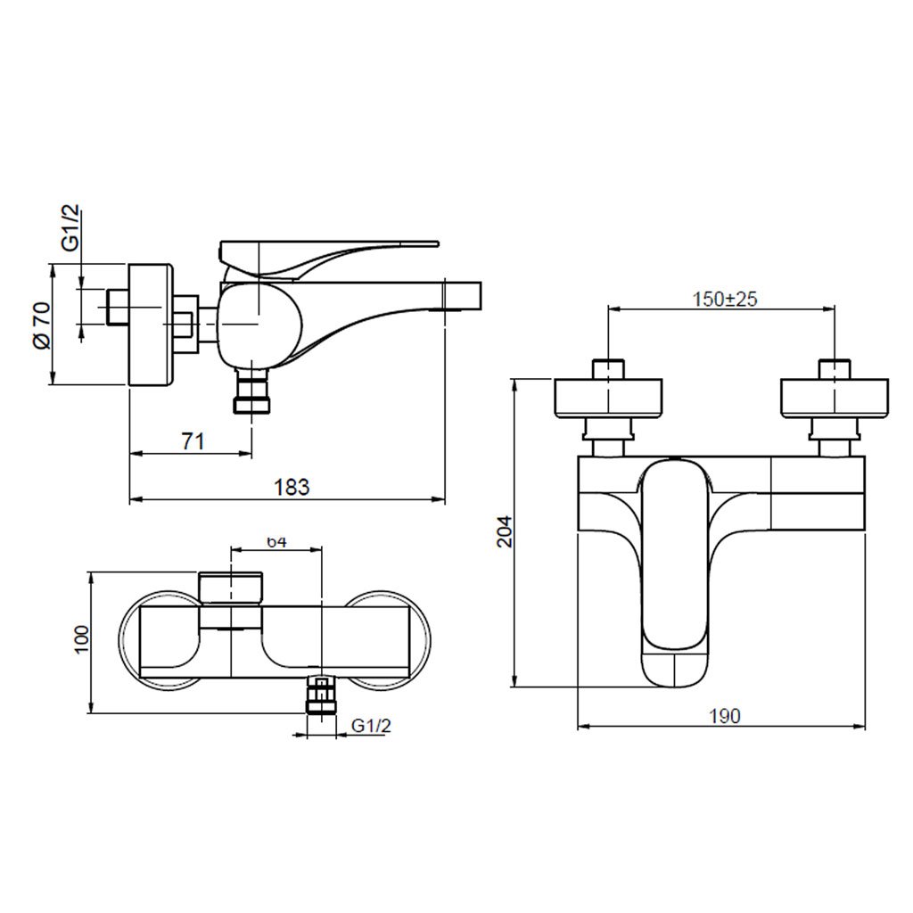 Bản vẽ kích thước Vòi sen tắm HAFELE Anista 589.02.456 .