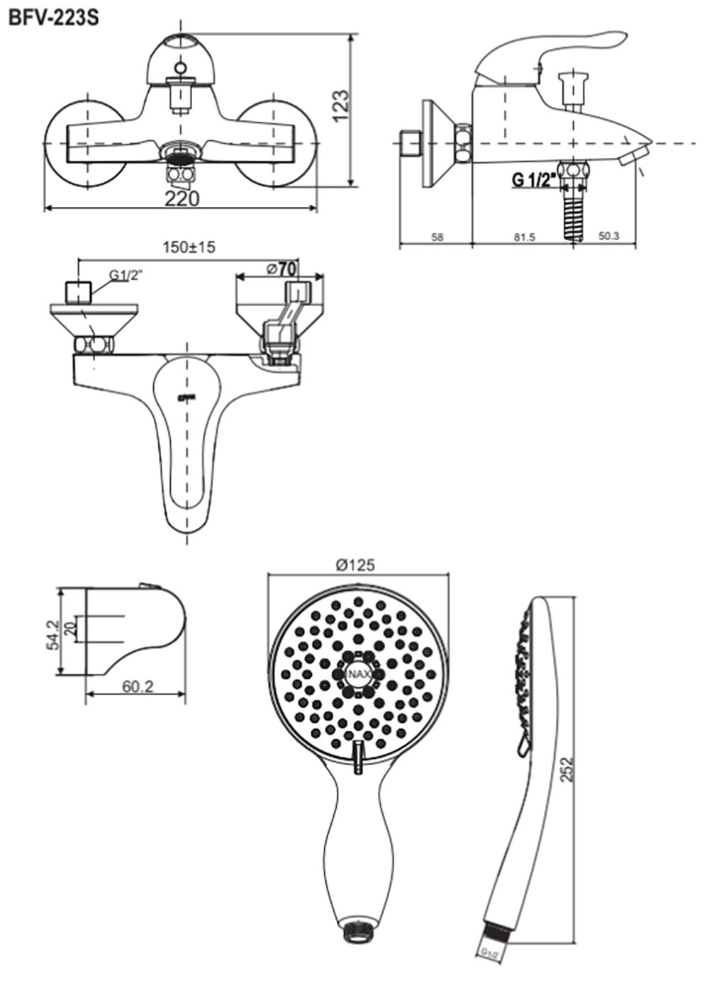 Thông số kĩ thuật Vòi sen tắm INAX BFV-223S nóng lạnh