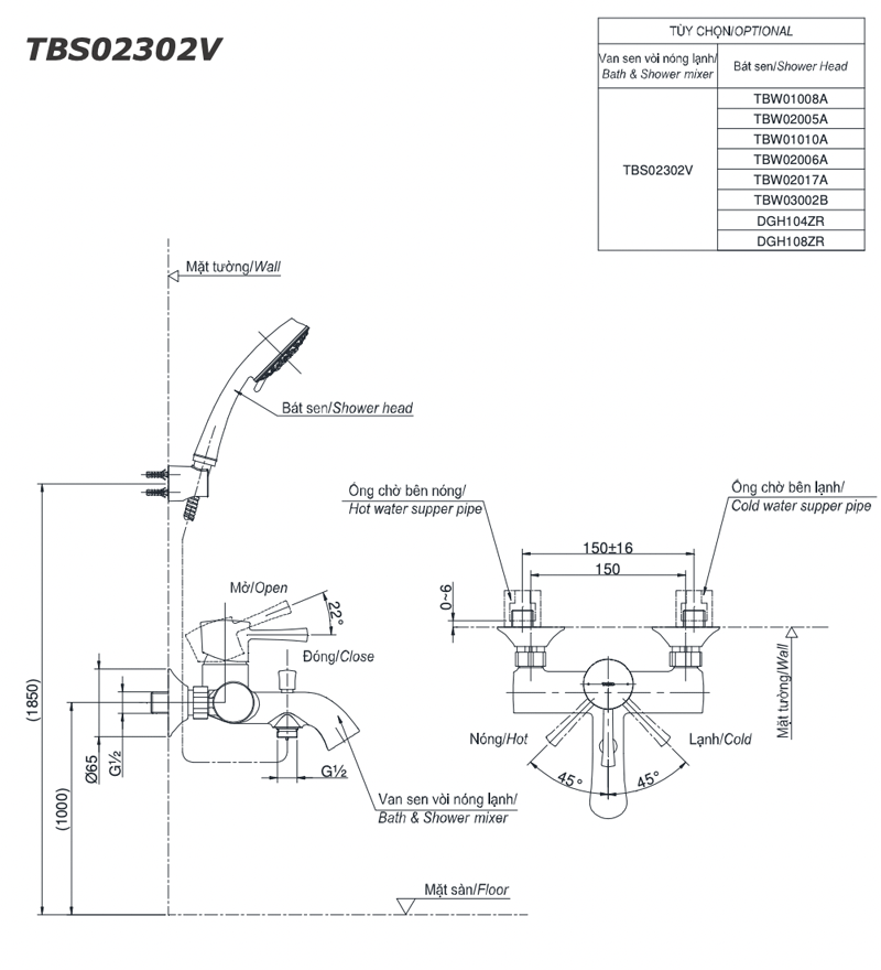 Bản-vẽ-kỹ-thuật Vòi-sen-tắm-TOTO TBS02302V-nóng-lạnh
