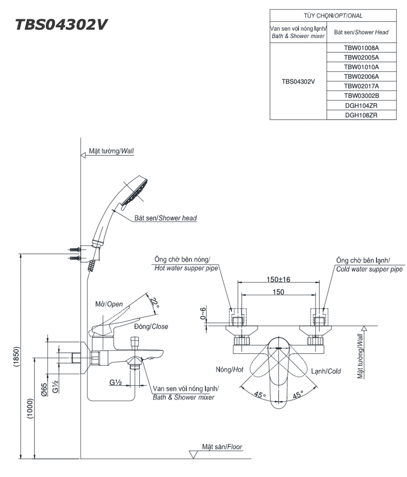 Bản-vẽ-kỹ-thuật Vòi-sen-tắm-TOTO TBS04302V-nóng-lạnh