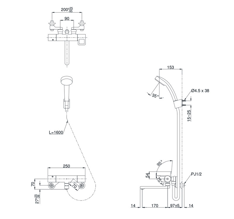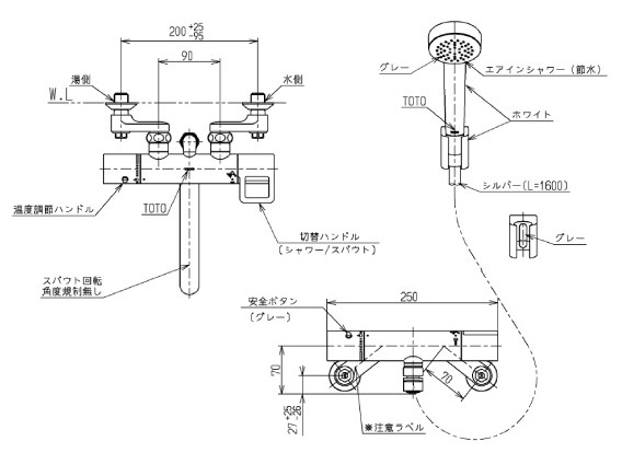 Bản vẽ kỹ thuật Vòi sen tắm TOTO TMGG-40E nhiệt độ