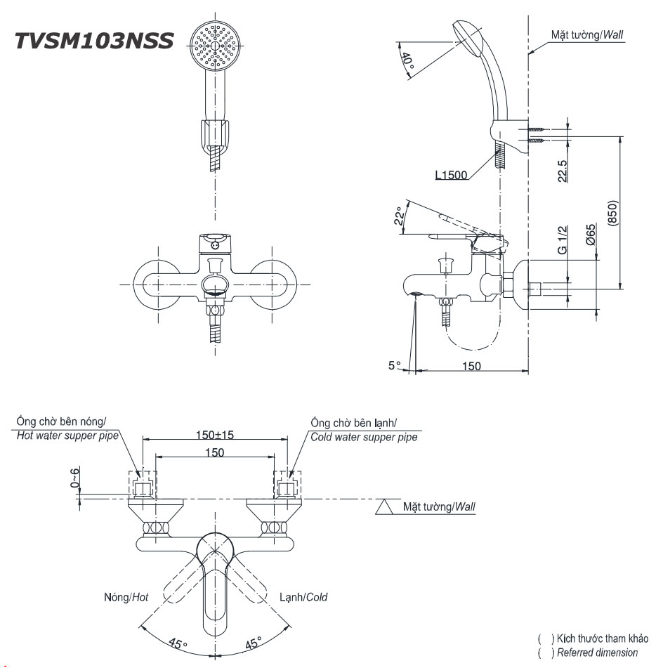 Bản vẽ kỹ thuật Vòi sen tắm TOTO TVSM-103NSS nóng lạnh